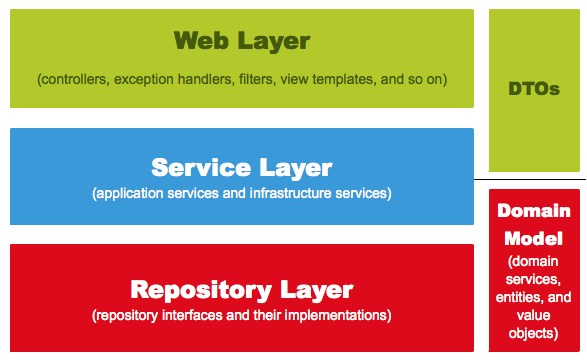 Dto(Data Transfer Object)는 계층 간에 데이터 교환을 위한 객체를 의미하며, Dtos는 이들의 영역을 의미한다. 예를 들어 뷰 템플릿 엔진에서 사용될 객체나 Repository Layer에서 결과로 넘겨준 객체 등이 이들을 이야기한다.