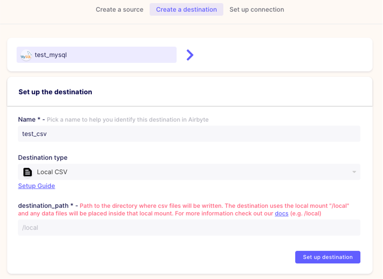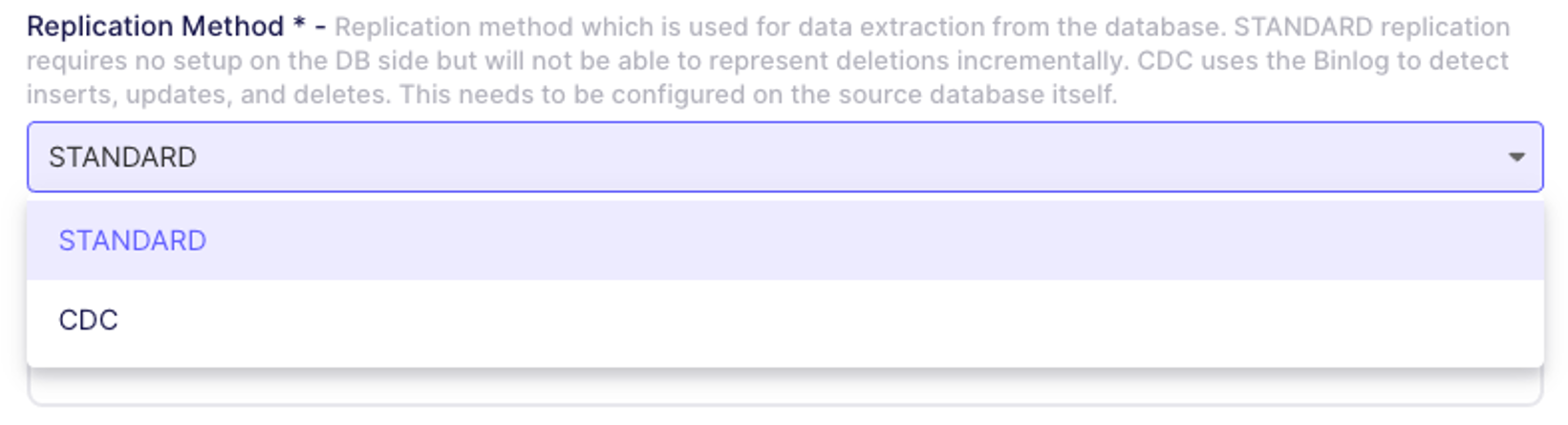 접속 정보를 채워 넣고 복제 방법에 대한 선택을 하는데 여기서 신기하게도 CDC(Change Data Capture)로 2실시간 복제 할수가 있다는 점에서 기존의 ETL 툴과는 다른 점이 보였다. 이것만으로도 Airbyte를 사용할 이유가 있어보였다 실제로 어떻게 작동할지는 추 후 알아보기로 하고 이번에는 기본 모드로 복제를 하도록한다.