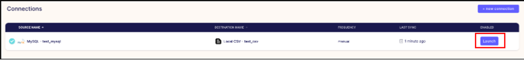 커넥션을 만들고 난뒤 Launch버튼을 눌러 배치를 실행시킨다.