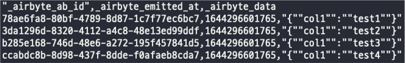데이터를 csv로 저장했는데 json 형태로 저장되는걸 보고 파일로 내려 받아서 사용하기에는 힘들겠구나라는 생각을 했다. test1,2,3,4 라는 데이터를 csv로 저장한 모습.